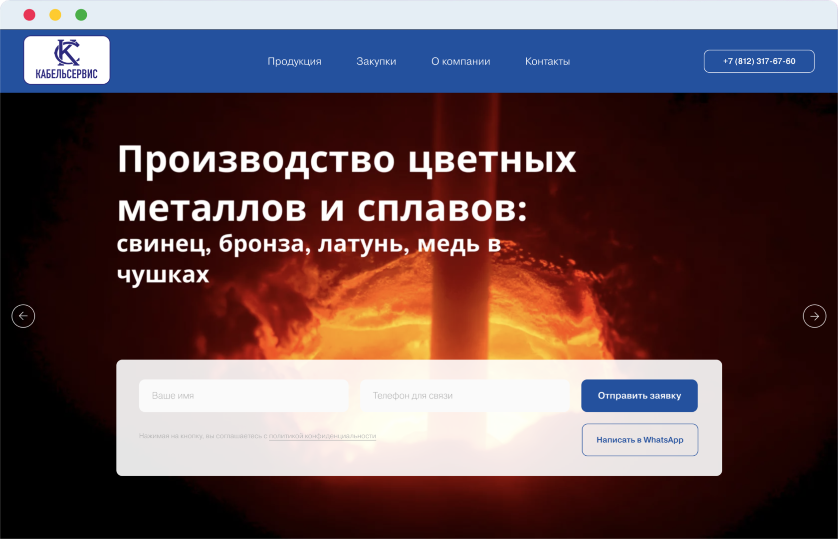 Корпоративный сайт для компании по производству цветных металлов и сплавов
